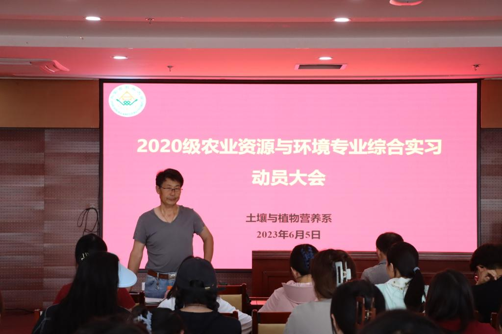 大会开始,首先由土壤与植物营养系主任李斐教授进行讲解,老师生动形象且幽默风趣的语言使同学们听得更加明白,老师在“娱乐”中将要传递的内容告知同学们。随后,由退休教师包翔发言,老师在更加细微之处为同学们提出了大纲,包括准备工具,分组情况,药品问题等等。最后,老师们又补充了实习路线的详细情况,以及如何集合,携带物品,实习报告模板等情况。老师们询问同学们的情况,和同学们聊天,争取将实习安排做到最好!