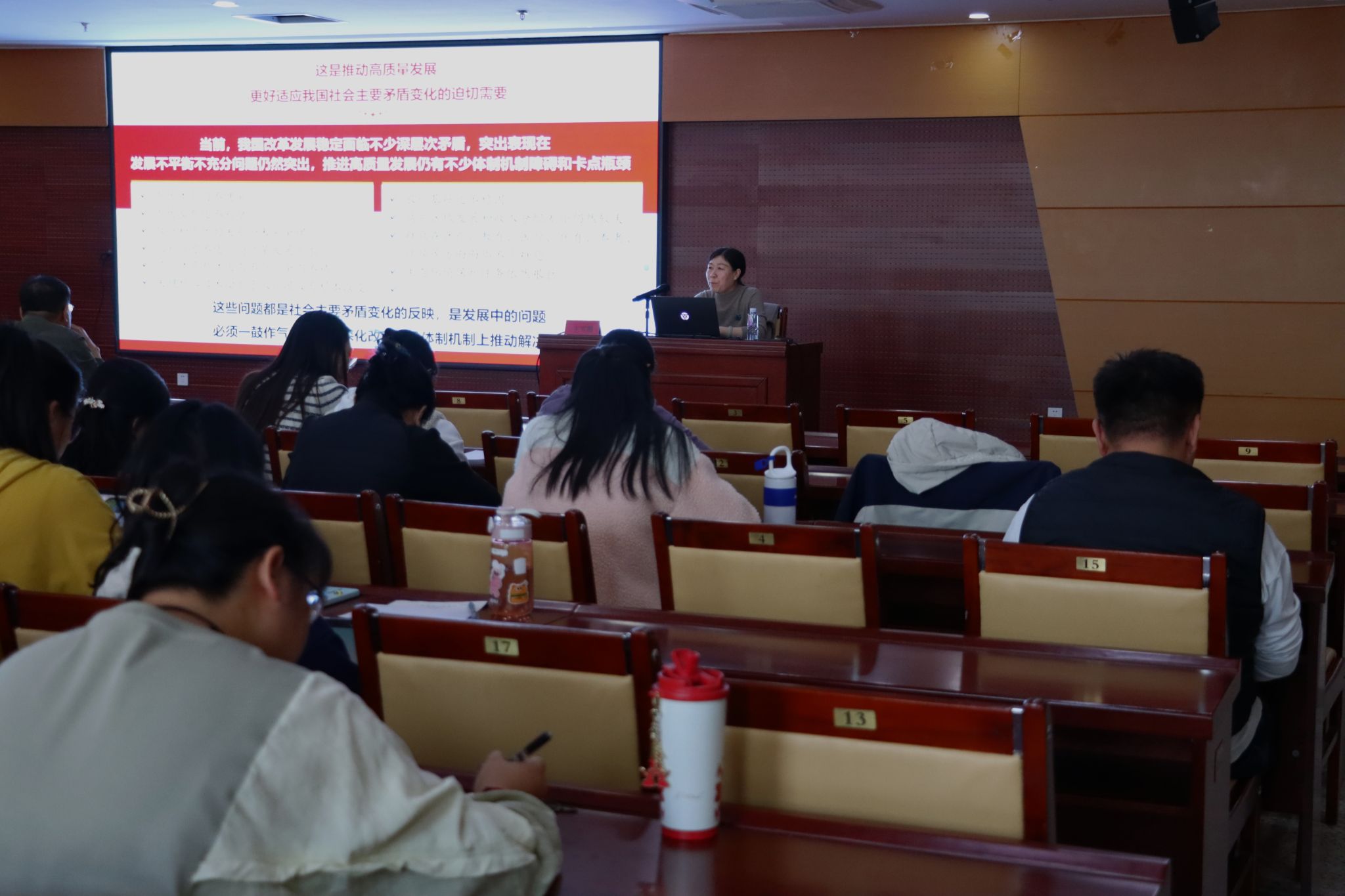 本次宣讲,王雪鹏老师从改革开放是重要法宝、必由之路、关键一招三方面介绍了党的二十届三中全会的重要意义。随后,通过王雪鹏老师的讲解,深刻认识全会主题和进一步全面深化改革的重大原则的内容,深入学习领会了习近平总书记在党的二十届三中全会上的重要讲话精神,全面准确理解《决定》提出的进一步全面深化改革重大举措。最后,在王雪鹏老师的激情宣讲中,全院教职工了解到深入贯彻落实党的二十届三中全会精神,为中国式现代化内蒙古新篇章、伟德国际1946新篇章书写奋进之笔。