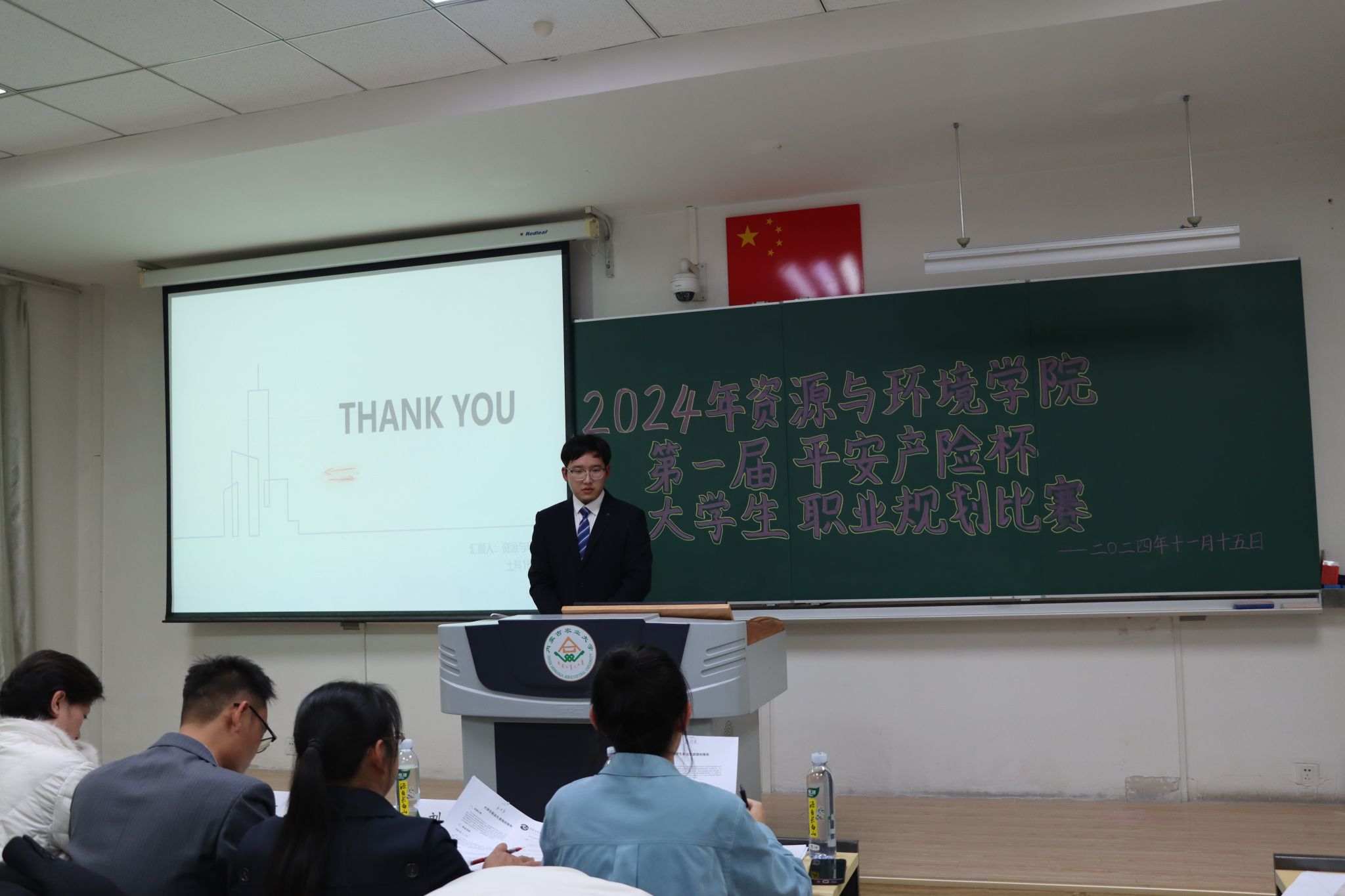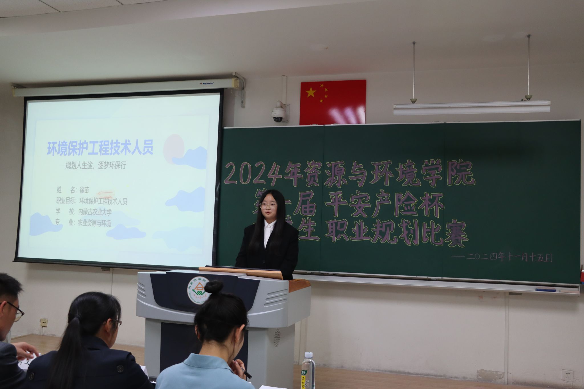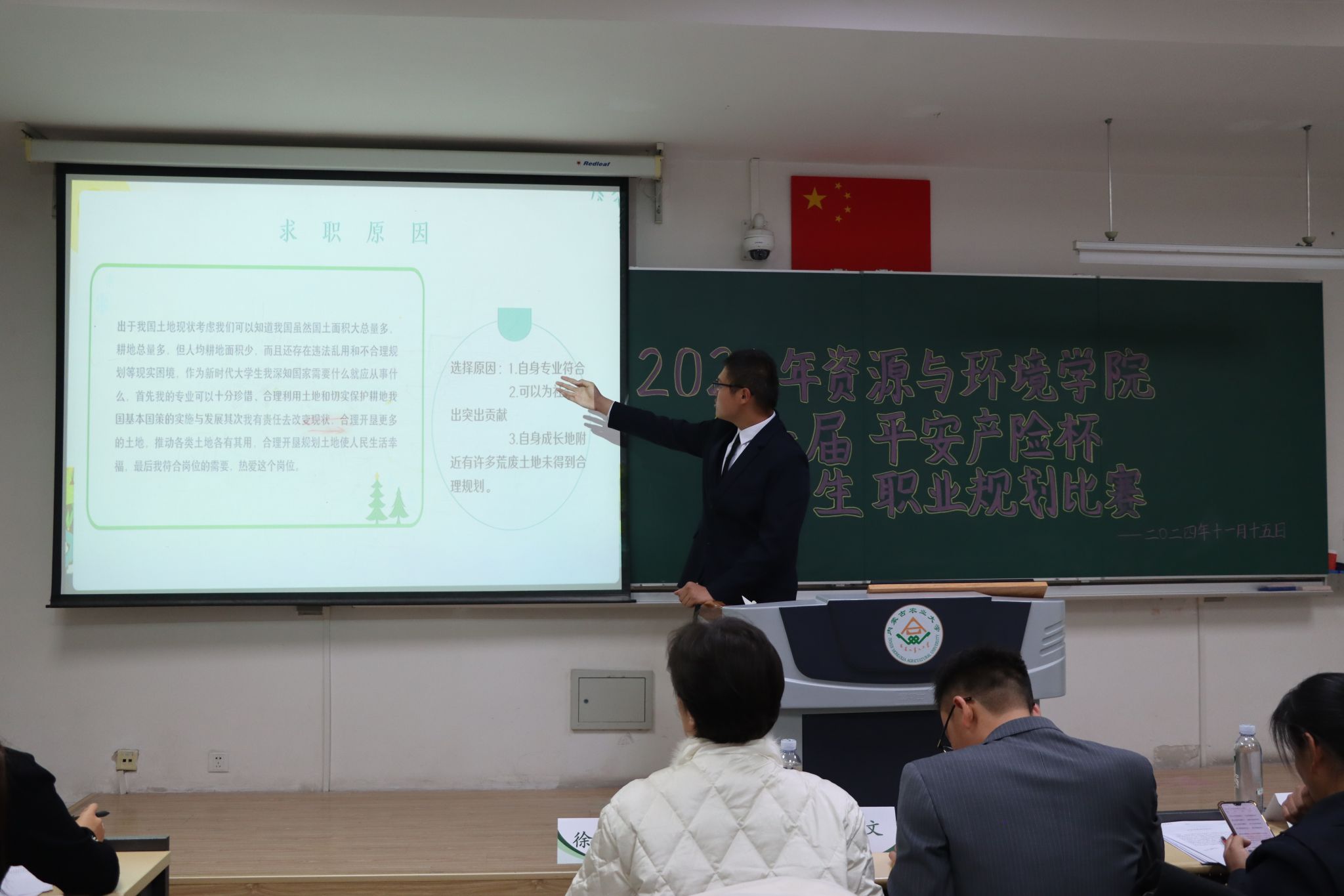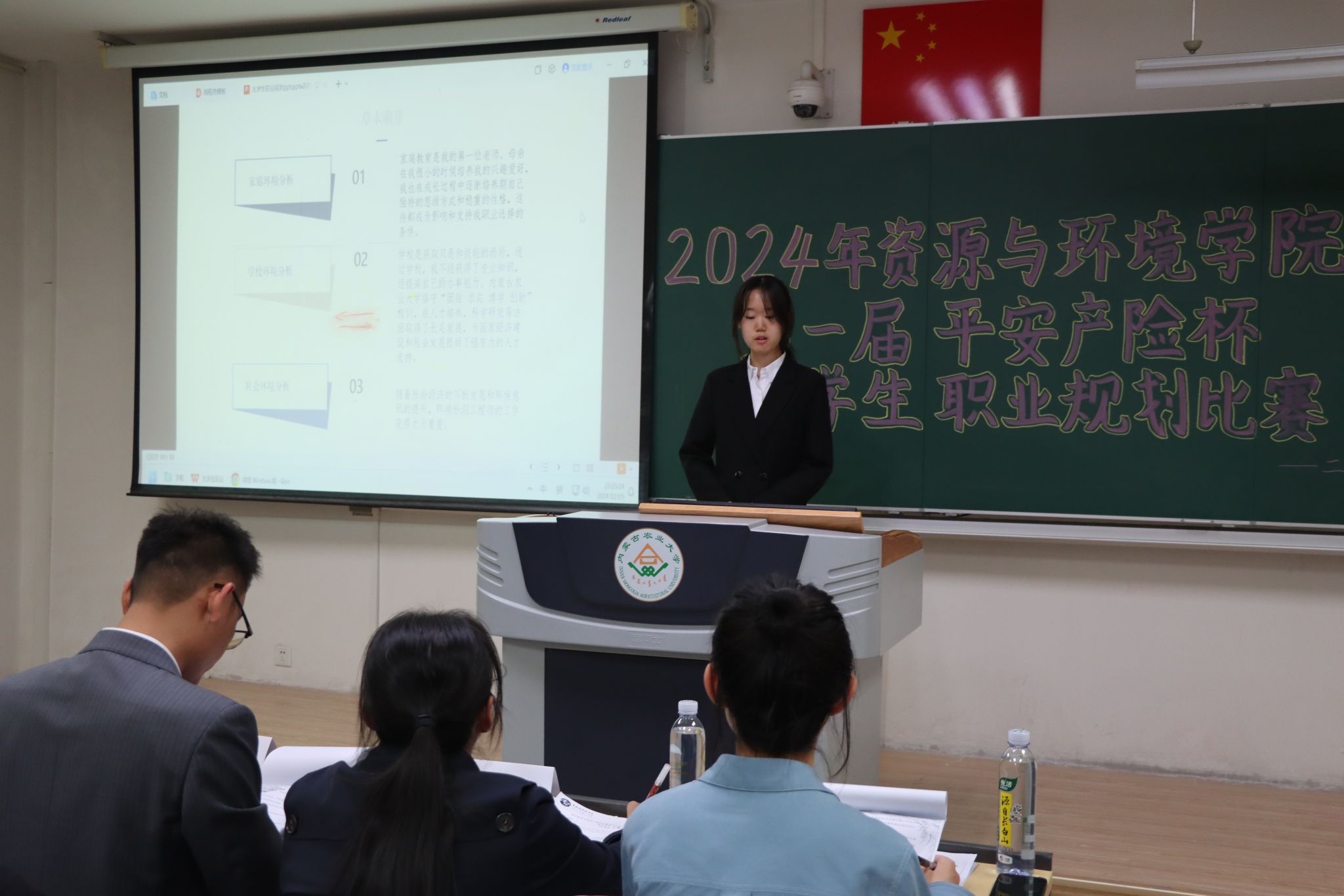 活动开始,主持人介绍了比赛规则,比赛环节成长赛道有主题陈述、评委提问两个部分。比赛拉开帷幕,选手们结合ppt,对自己的职业规划进行生动阐述,从自我认知、职业认知、国家战略等方面展示自己的职业目标、发展路径和实施计划。评委们针对选手的展示内容进行提问和点评,考察选手们的职业规划能力和应变能力。此外,他们在比赛过程中为选手提供了专业的指导和建议,帮助选手更好地完善自己的职业规划。