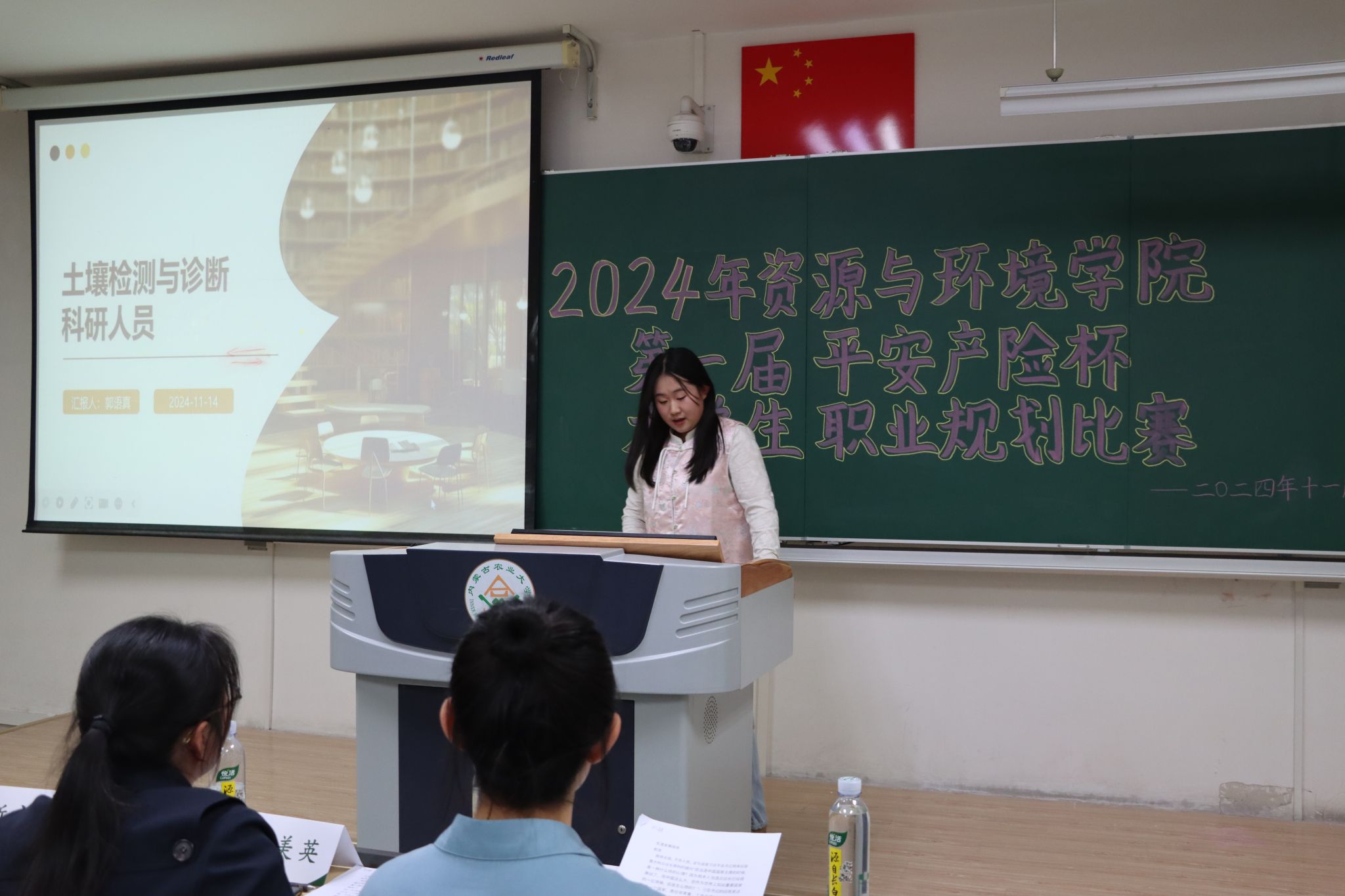 参加本次活动的领导及评委有:中国平安财产保险股份有限公司内蒙古分公司索丁女士,新途径面试研究院经理乔斯文,人才招聘处徐文君女士,公司党委委员刘美英教授,bevictor伟德2023届土壤学硕士研究生温雅杰女士,学办辅导员其乐木格老师。