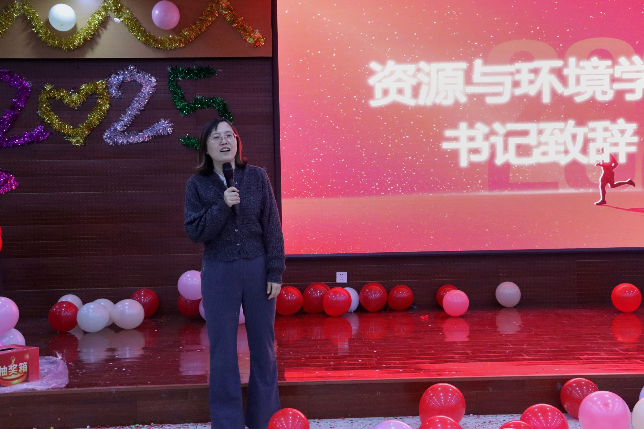 晚会在活力四射的开场舞《惊鸿舞》中拉开帷幕。随后进行的“你画我猜”环节将晚会推向了高潮。之后由同学和老师分别带来了《房间》、《芦花》、《鸿雁》等歌曲,用美妙的旋律和深情的歌声感染着在场的每一个人。由赵坤等人带来的小品《突然的“组会”》用幽默诙谐的方式展现了学术生活中一场“惊心动魄”的组会风波,引发了观众们的强烈共鸣与阵阵欢笑。舞台之下,观众们挥舞着荧光棒,欢呼声与掌声雷动,师生的脸庞满是幸福与欢乐。精彩的节目之余,晚会还设置了丰富的互动游戏环节,现场的观众们积极参与,欢呼声和笑声此起彼伏,共同度过了一段难忘时光。晚会最后,刘漫中书记和赵云虎书记送来祝福,祝愿大家身体健康,阖家欢乐,学业有成。